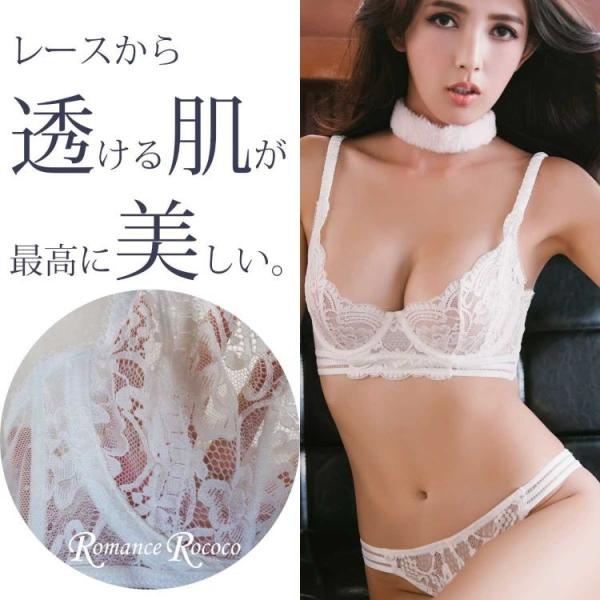 いい女 透け感 ノンパテッドブラセット 透け感 ノーカップ シースルーブラショーツ ロマンスロココ Romance Rococo D Fashion